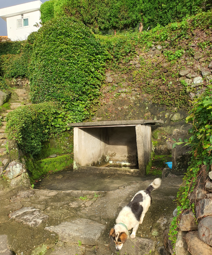 내가 목마를 줄 알고 동네 우물가도 안내해주는 동네 가이드 강아지야. 고맙다