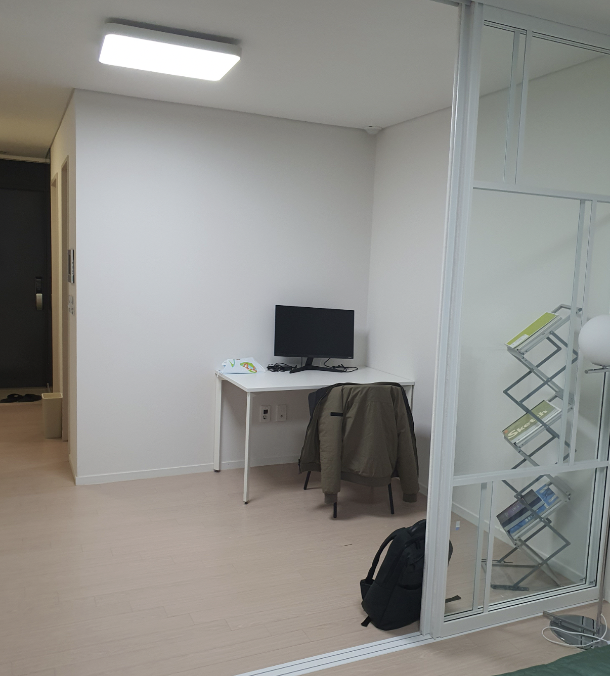 하지만 그렇게 서 있는 것도 잠시. 흘러가는 시간을 자각하는 순간부터 현실로 돌아와 분주히 움직이기 시작했다. 내가 가져온 짐을 새로운 공간에 배치하고 일할 공간에 노트북 컴퓨터와 휴대용 모니터를 올려놓고 케이블을 연결했다. 익숙한 작업환경을 빼곤 모든 것이 완전히 달라진 내 주변...