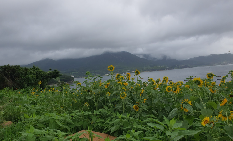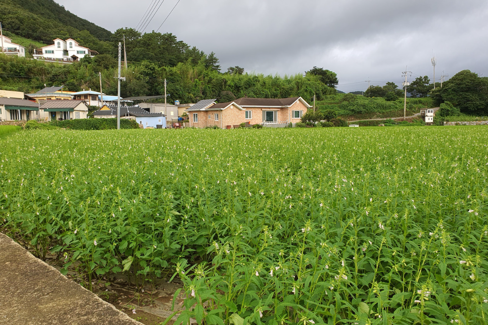 가지 않은 길이 나에게 주는 기대감과 도파민을 쫓아 계속 길을 따라갔더니 나오는 고즈넉한 마을. 해안도로도 아닌 바래길로 들어선 마을은 느낌이 새로웠다. 바람에 일렁이는 논밭뷰가 흐린 하늘에서 시선을 거두게 해 주었고, 솔솔 부는 바람에 청량감이 느껴졌다.
