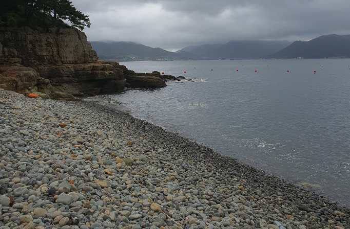 농수로를 따라가다 보니 새로운 해안가가 나타났는데 그 역시 차로 쉽게 찾아들어오기 힘든 곳에 자리하고 있었다. 복잡함 없이 단출하고 깔끔한 몽돌해변에서 넓게 트인 바다를 또 바라보았다.